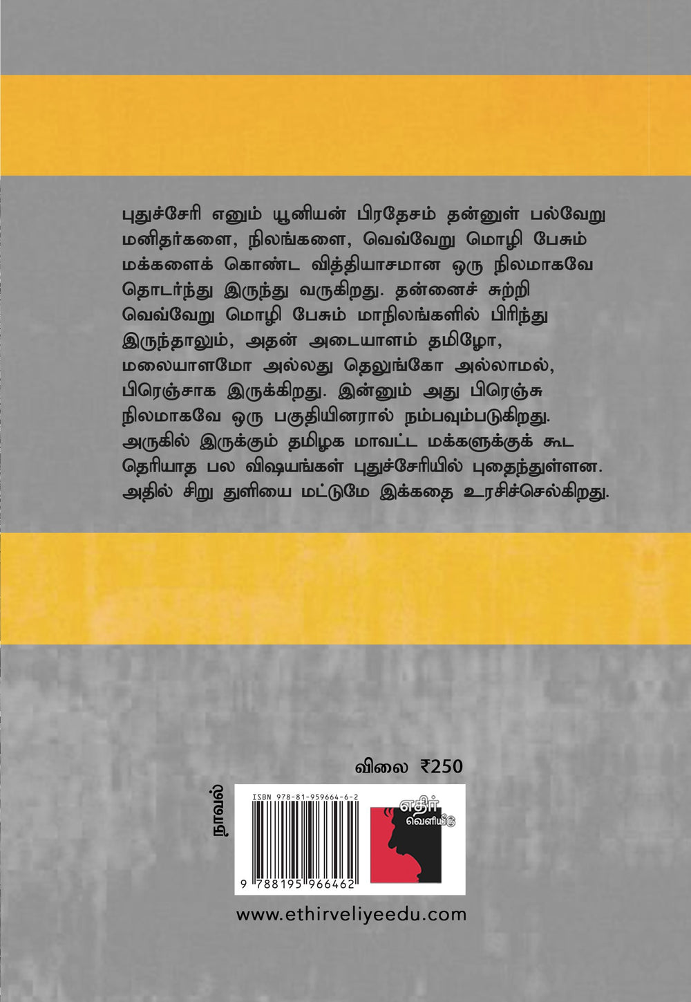 புதுச்சேரி எனும் யூனியன் பிரதேசம் தன்னுள் பல்வேறு மனிதர்களை, நிலங்களை, வெவ்வேறு மொழி பேசும் மக்களைக் கொண்ட வித்தியாசமான ஒரு நிலமாகவே தொடர்ந்து இருந்து வருகிறது. தன்னைச் சுற்றி வெவ்வேறு மொழி பேசும் மாநிலங்களில் பிரிந்து இருந்தாலும், அதன் அடையாளம் தமிழோ, மலையாளமோ அல்லது தெலுங்கோ அல்லாமல், பிரெஞ்சாக இருக்கிறது. இன்னும் அது பிரெஞ்சு நிலமாகவே ஒரு பகுதியினரால் நம்பவும்படுகிறது. அருகில் இருக்கும் தமிழக மாவட்ட மக்களுக்குக் கூட தெரியாத பல விஷயங்கள் புதுச்சேரியில் புதைந்துள்ளன. அதில் சிறு துளியை மட்டுமே இக்கதை உரசிச்செல்கிறது.