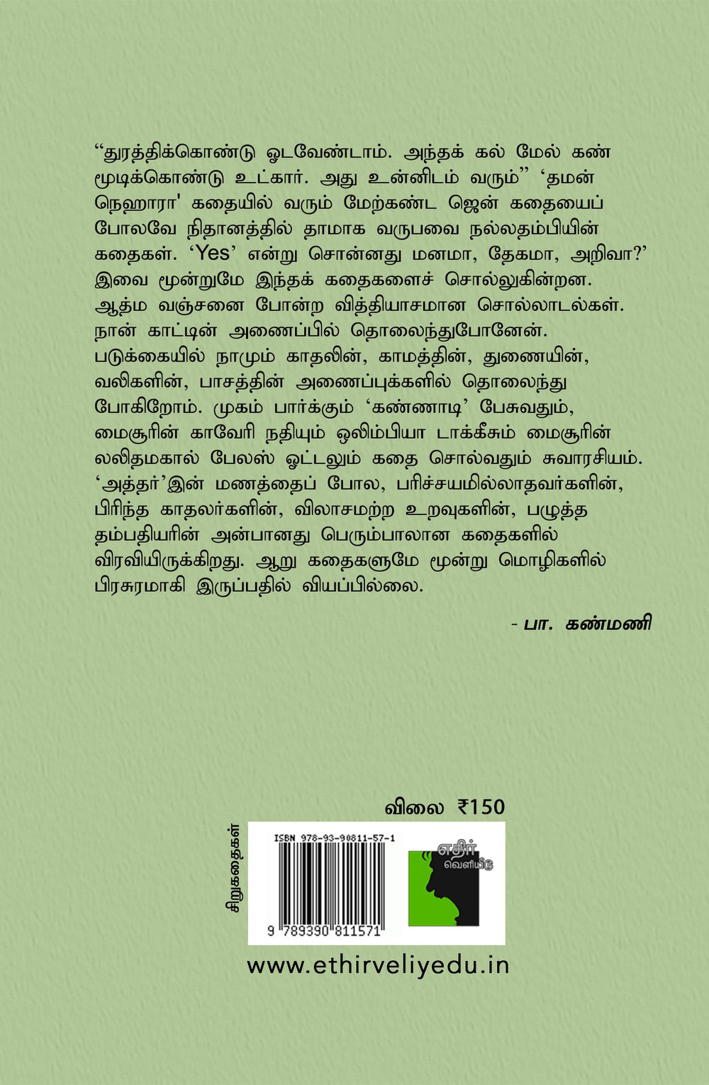 குவெம்பு பாஷா பாரதி வெளியீடுகளான பெரியார் விசாரகளு (2017), தெங்கனமஹிளா லேககரு (2016), நிச்சம் பொசது (2016) தொகுப்புகளில் பல தமிழ் கட்டுரைகளை கன்னடத்திற்கு மொழிபெயர்த்துள்ளார். குவெம்பு பாஷா பாரதிக்காக – சங்கக் கவிதைகள் சிலவற்றை கன்னட எழுத்தாளர் திருமதி லலிதா சித்தபசவய்யாவுடன் இணைந்து மொழிபெயர்த்திருக்கிறார்.