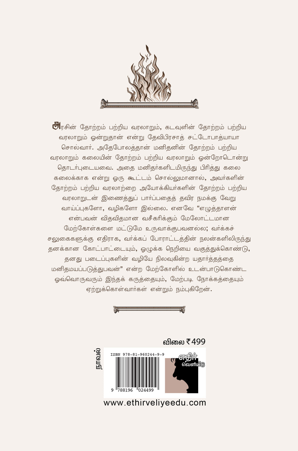 "பின்நவீனத்துவமும் அடையாள அரசியலும்”, "என்.ஜி.ஓ-க்கள் ஓர் ஏகாதிபத்திய அபாயம்” என இரண்டு மொழிபெயர்ப்புகளும், "நகர்துஞ்சும் நள்யாமத்தில் செங்கோட்டு யானைகள் எடுத்துப் படித்த VIII தஸ்தாவேஜ்கள்”, தொல்பசிக் காலத்து குற்ற விசாரணை அறைக்குள் மூடி முத்திரையிடப்பட்ட 8 தடயக்குறிப்புகள் ஆகிய குறுநாவல்களும், சிறுகதைகளும் அடங்கிய தொகுப்புகள் வெளிவந்துள்ளன.