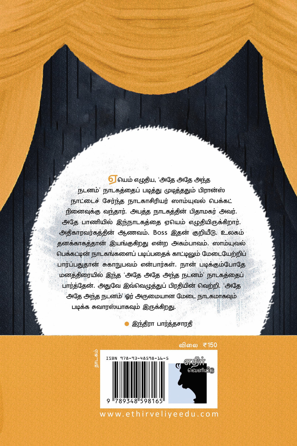 ஏயெம் எழுதிய, ‘அதே அதே அந்த நடனம்’ நாடகத்தைப் படித்து முடித்ததும் பிரான்ஸ் நாட்டைச் சேர்ந்த நாடகாசிரியர் ஸாம்யுவல் பெக்கட் நினைவுக்கு வந்தார். அபத்த நாடகத்தின் பிதாமகர் அவர். அதே பாணியில் இந்நாடகத்தை ஏயெம் எழுதியிருக்கிறார்.